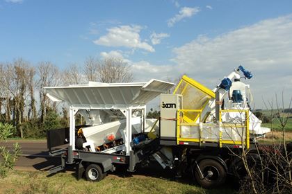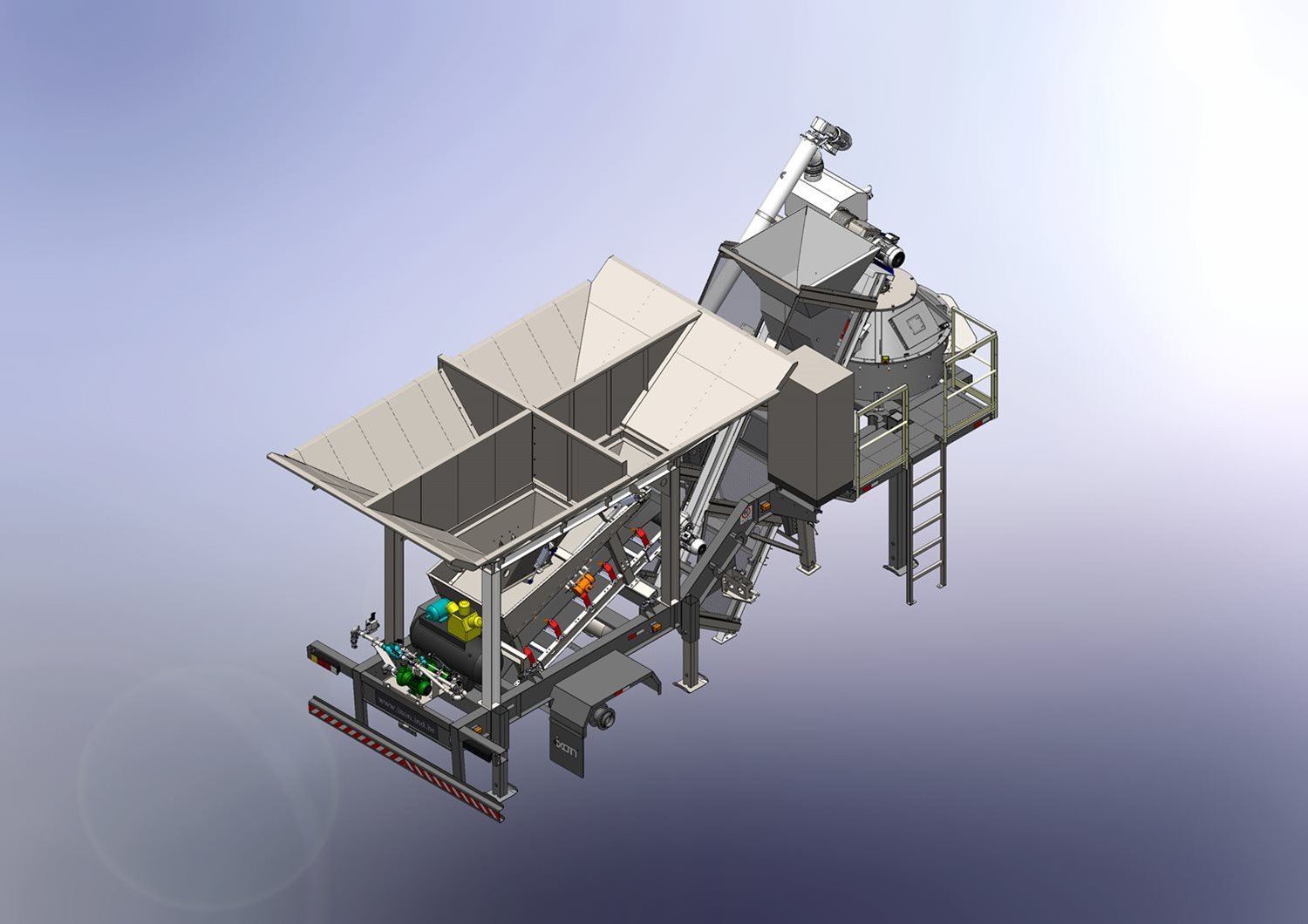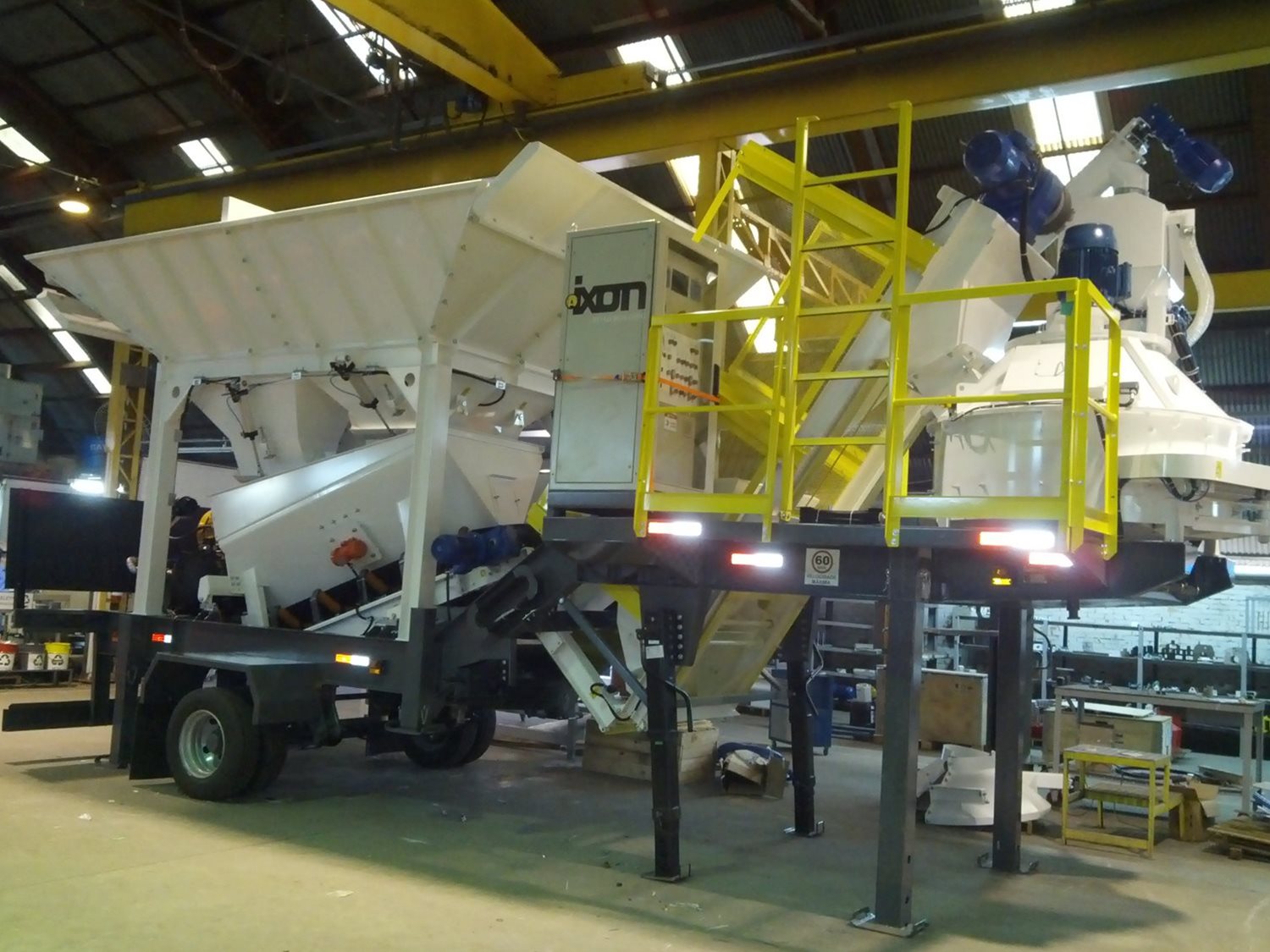 Planta mezcladora móvil compacta. Desarrollada para atender industrias de premoldeados y bloques, y aplicada donde se necesita alta calidad del hormigón y donde son necesarios rígidos controles tecnológicos. Esta planta posee una ventaja adicional en relación a las plantas dosificadoras respecto al uso del cemento, debido a un considerable ahorro económico, pudiendo llegar a una reducción de 5%. No necesita fundación, el área de los apoyos asegura estabilidad en un suelo nivelado y compactado adecuadamente.