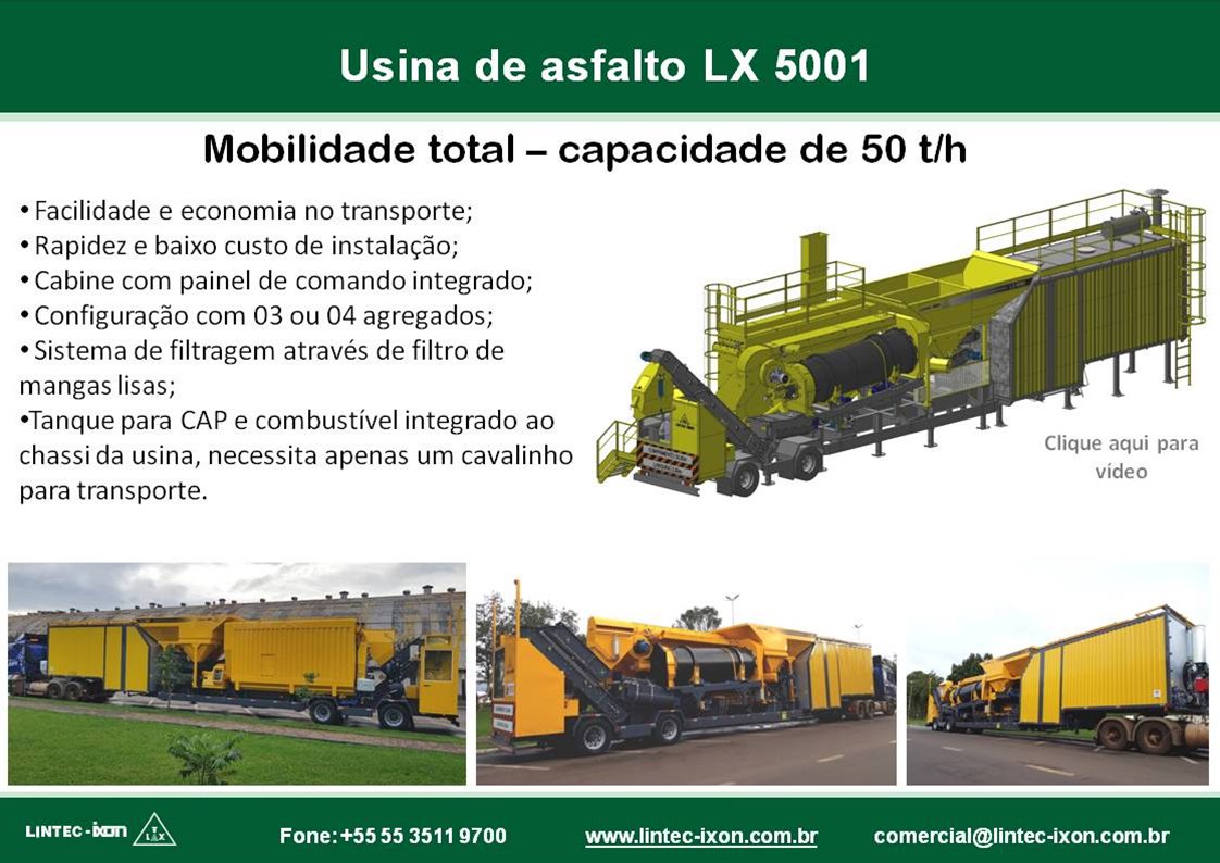Estaremos na Paving Expo 2019, que acontecerá de 27 a 29 de Agosto, apresentando uma grande novidade que tem se destacado no mercado nacional e externo, nossa Usina de Asfalto LX 5001. Cadastramento e maiores informações diretamente no site da feira http://www.pavingexpo.com.br/credenciamento.