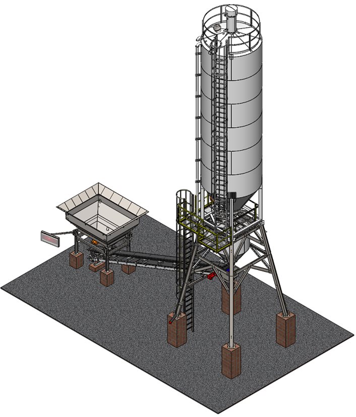 - - Silo metálico com capacidade de 80 m³ (100 t). Outras quantidades e capacidades sob consulta;