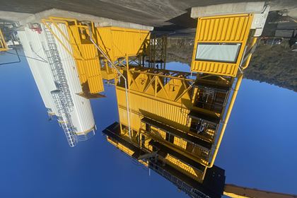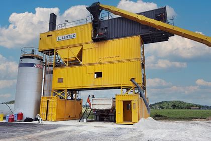 Usina de mistura de asfalto gravimétrica totalmente conteinerizada, com capacidade de 120 - 140 t/h.