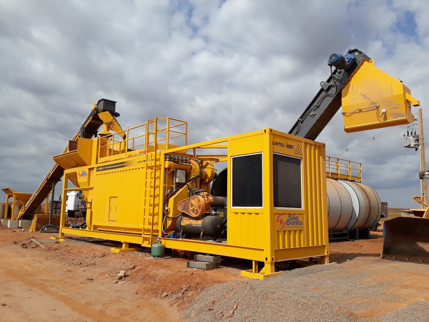 Usina de Asfalto de 40 t/h, conceito conteinerizado que facilita o transporte e instalação em diferentes regiões ou conglomerados urbanos. Não necessita base e rampa para agregados.