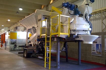 Planta mezcladora móvil compacta. Desarrollada para atender industrias de premoldeados y bloques, y aplicada donde se necesita alta calidad del hormigón y donde son necesarios rígidos controles tecnológicos. Esta planta posee una ventaja adicional en relación a las plantas dosificadoras respecto al uso del cemento, debido a un considerable ahorro económico, pudiendo llegar a una reducción de 5%. No necesita fundación, el área de los apoyos asegura estabilidad en un suelo nivelado y compactado adecuadamente.