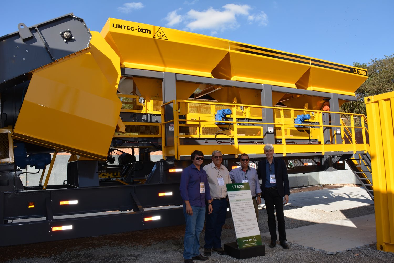 “Tendo a necessidade de comprar uma Usina de Asfalto para as obras da TeConPav em nossa região, fomos à feira M&T EXPO 2015, para conhecer as inovações das usinas oferecidas no mercado brasileiro.” Destaca Jarbas Cavalcanti. “De todas as usinas que nos foram apresentadas, a que nos chamou atenção foi a LX-8000 da LINTEC-IXON, por apresentar: