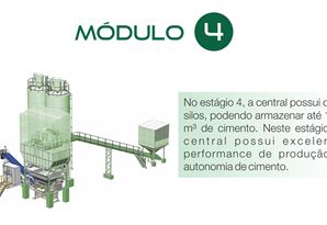 Módulo 4 - Neste módulo, a central possui dois silos, podendo armazenar até 160 m³ de cimento.Neste estágio, a central possui excelente performance de produção e autonomia de cimento.
