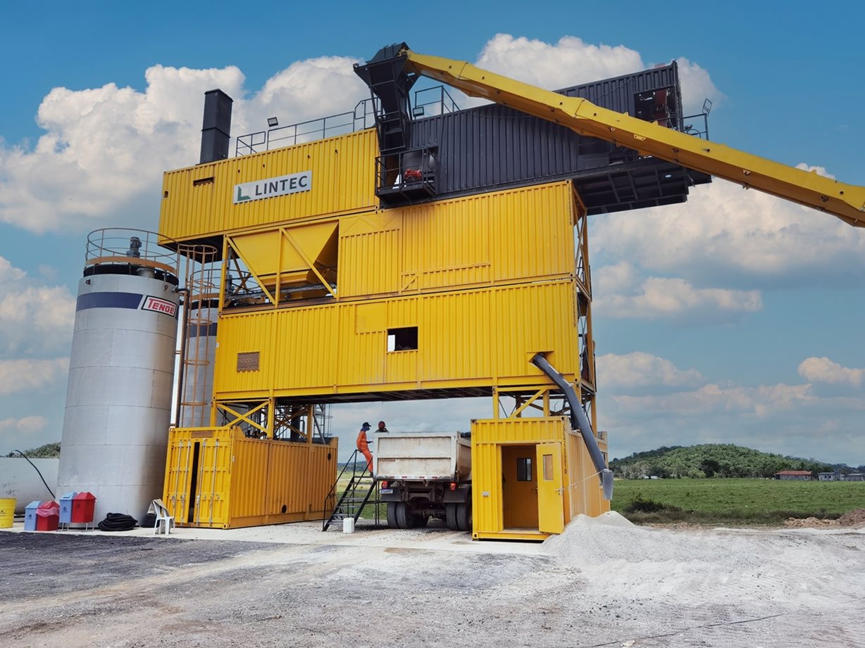Usina de mistura de asfalto gravimétrica totalmente conteinerizada, com capacidade de 120 - 140 t/h.