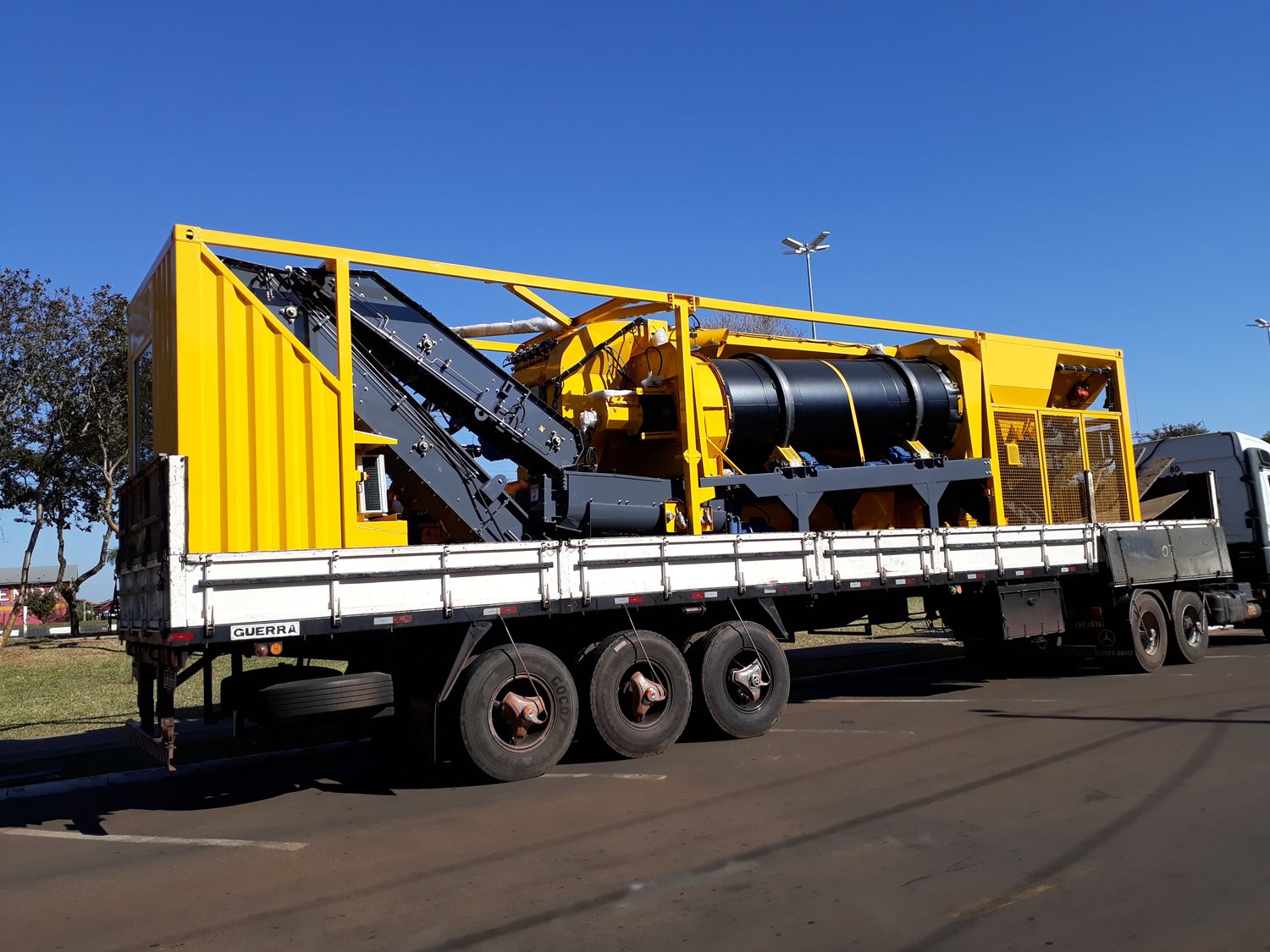 Usina de Asfalto de 40 t/h, conceito conteinerizado que facilita o transporte e instalação em diferentes regiões ou conglomerados urbanos. Não necessita base e rampa para agregados.